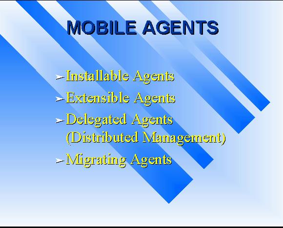 Mobile agents are similar to regular agents except that they can also move from one network element to another.