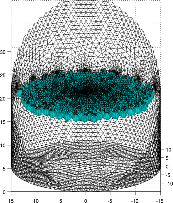 GREIT evaluation: Make simulation data (3D)In order to test the performance of GREIT, we create a set of simulation data. Here we look at the performance for an object moving radially toward the side from the centre of the medium.Prepare simulation data: phantom dataCreate a simulation netgen model here:
