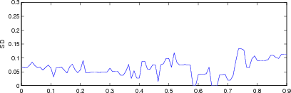 plot(r, params(4,:)); axis([0,0.9,0,0.3]); ylabel('SD');